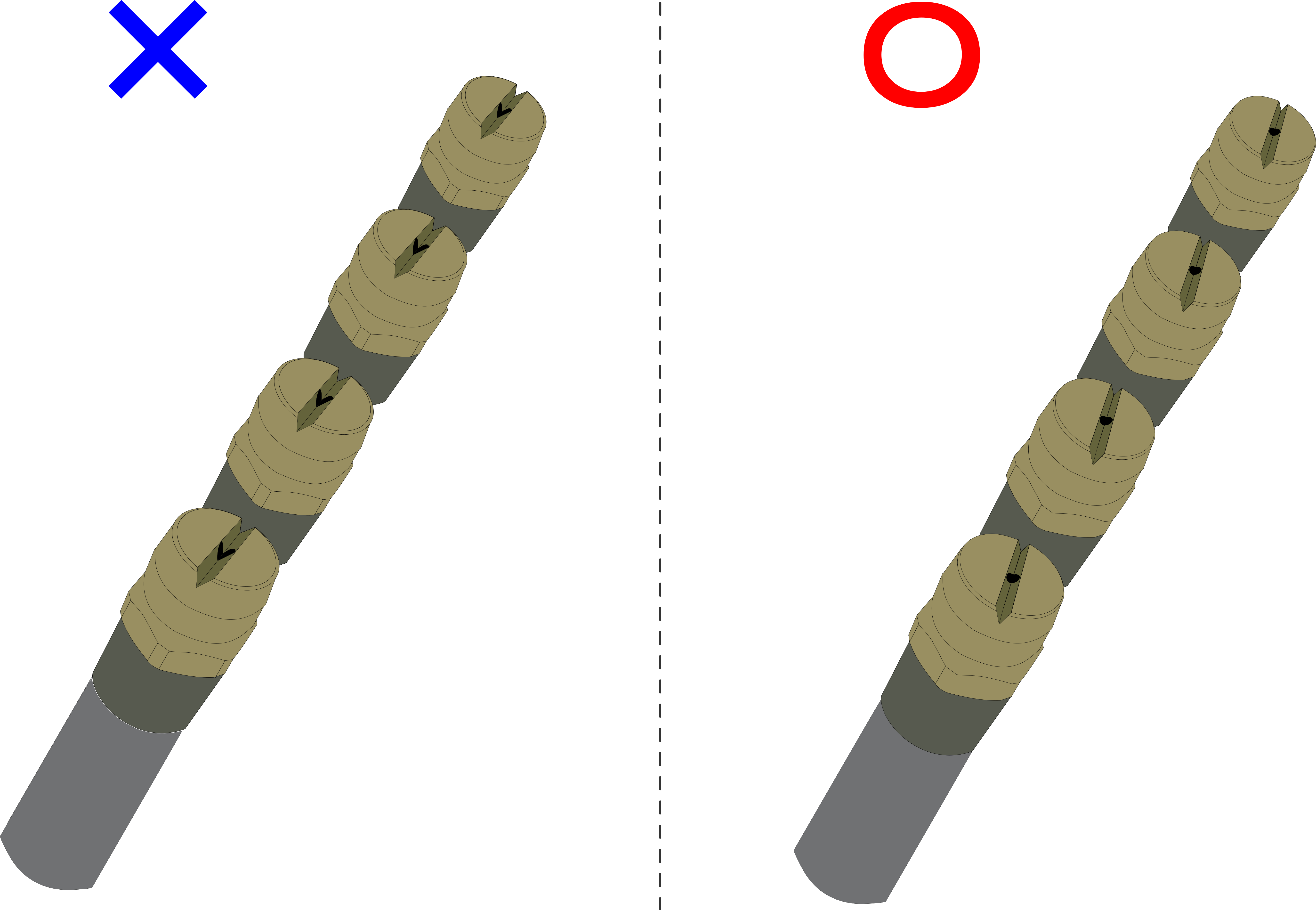 ノズルの噴射口同士の軌道が最低限被らないように5~10°傾けてください。