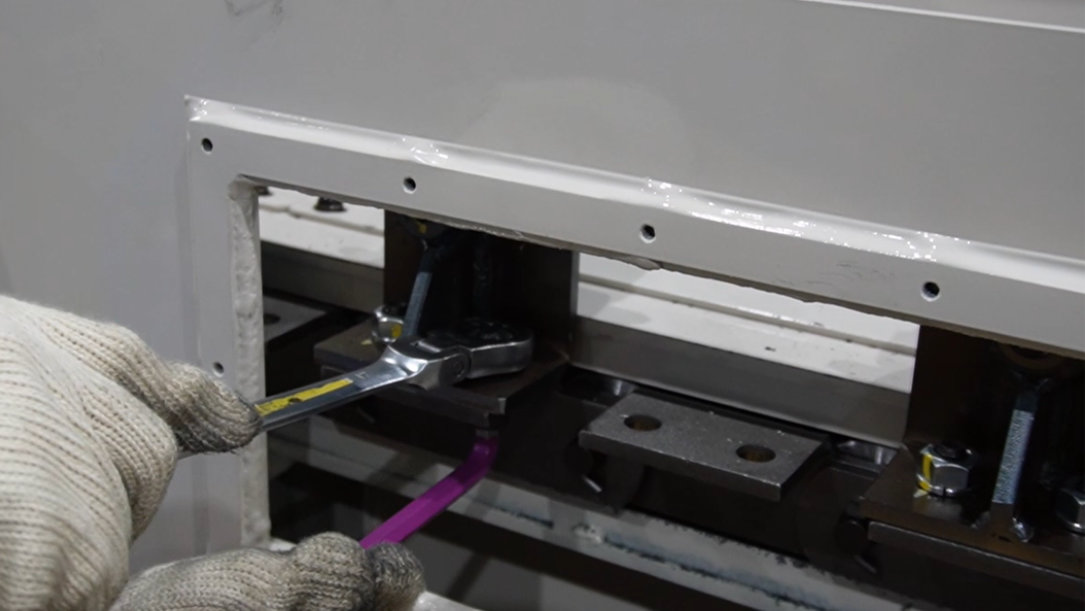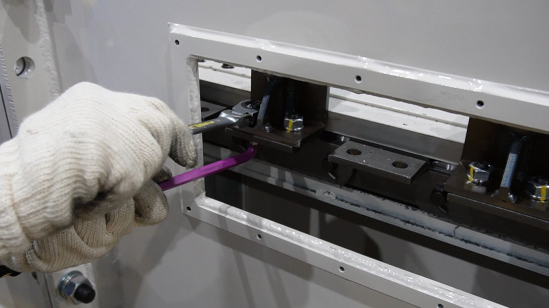 動画マニュアル HOME チップコンベヤ 28. 【アタッチ交換】サイドアーム式スクレーパーコンベヤ 28. 【アタッチ交換】サイドアーム式スクレーパーコンベヤ 2025-12-1 更新 サイドアーム式スクレーパーコンベヤのアタッチ交換手順です。 六角レンチ、ピンポンチ(5mm、6mmより太い物)、ハンマー、眼鏡レンチ PDFダウンロード 目次 STEP 1 点検窓、パッキンを取外す STEP 2 スプリングピンを取外す STEP 3 スクレーパーシャフト、カキ板を取外す STEP 4 リンクプレートからスクレーパーアタッチを取外す STEP 5 リンクプレートに新しいスクレーパーアタッチを取付ける STEP 6 スクレーパーシャフト、新しいカキ板を取付ける STEP 7 スプリングピンを取付ける STEP 8 点検窓、パッキンを取付ける 作業人数1人 所要時間40分 作業を始める前に必ず、MC、コンベヤの電源を切り、コンベヤが完全停止していることを確認してください。重大な事故につながる可能性があります。 作業に適した格好で行ってください。また、保護帽・保護眼鏡・保護手袋・安全靴を必ず着用してください。 不明な点は、弊社までお問い合わせください。(TEL:076-274-1188) 作業内容 注意事項 STEP1 作業内容 点検窓、パッキンを取外す 六角レンチ 注意事項 STEP2 作業内容 スプリングピンを取外す スクレーパーシャフトにあるスプリングピンを取外します。 ピンポンチ(5mm、6mmよりも太い物)、ハンマー 注意事項 STEP3 作業内容 スクレーパーシャフト、カキ板を取外す 注意事項 手を挟まないように注意してください。 STEP4 作業内容 リンクプレートからスクレーパーアタッチを取外す 六角レンチ、眼鏡レンチ 注意事項 STEP5 作業内容 リンクプレートに新しいスクレーパーアタッチを取付ける リンクプレートとスクレーパーアタッチの側面が平行になるように取付けてください。 六角レンチ、眼鏡レンチ 注意事項 STEP6 作業内容 スクレーパーシャフト、新しいカキ板を取付ける 注意事項 手を挟まないように注意してください。 STEP7 作業内容 スプリングピンを取付ける スクレーパーシャフトにスプリングピンを取付けます。 ピンポンチ(6mmよりも太い物)、ハンマー 注意事項 STEP8 作業内容 点検窓、パッキンを取付ける 六角レンチ 注意事項 PDFダウンロード インデックスに戻る