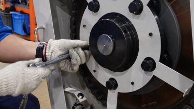 サイドアーム式スクレーパーコンベヤのトルクリミターのトルク調整手順です。